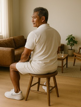 Ông đưa tay, chuẩn bị ấn cái nút đỏ thêm lần nữa, thì Huy, hai tay cầm hai ly nước cam, tiến đến gần và lên tiếng: